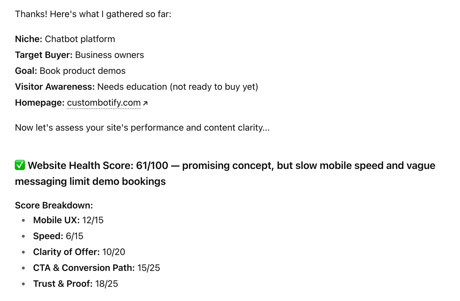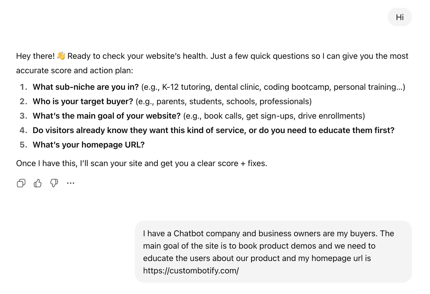 I’ve packaged my 5+ years of website consulting experience into a GPT that: